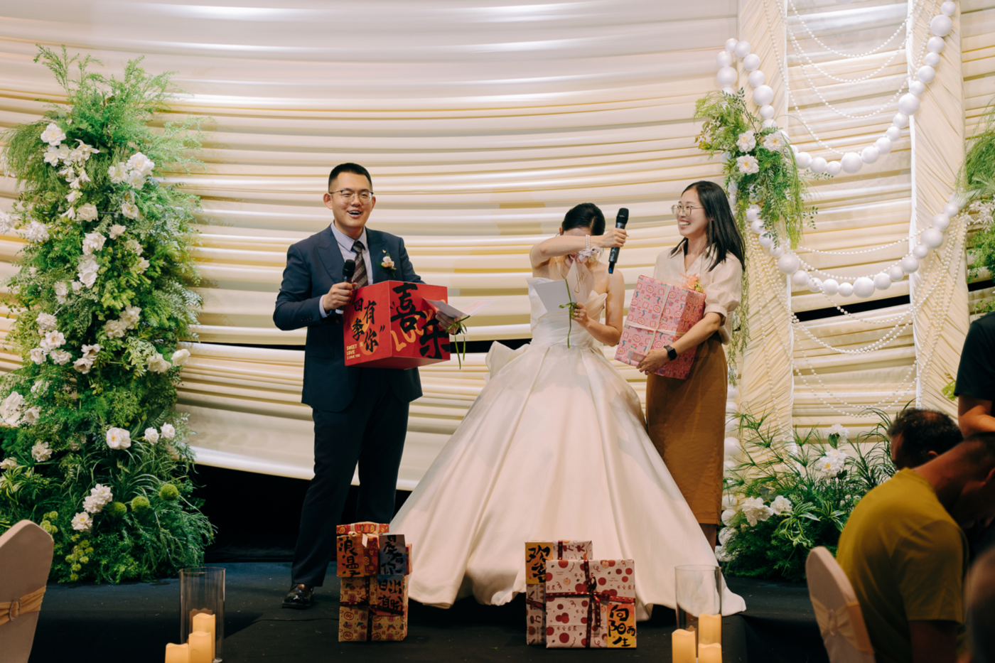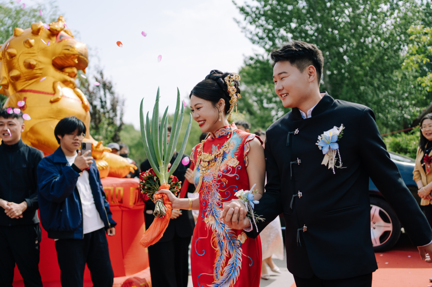 盛开的凌霄花, 扑面而来的柴火味儿, 热气腾腾的水饺, 穿着喜庆张罗早饭的家人们… 这个从小长大的村庄的美好, 好像在此刻聚集了。 中午的仪式是小隋和倩君自己主持, 他们准备了很多礼物。 抽中的亲友台上互动也很放松, 倩君的朋友说 “千言万语汇成一句话, 祝你和我一样!生个儿子!” 小隋的朋友说 “不用把他当人” 发言都非常意想不到。 按自己想法办婚礼要花很多心思, 但也会创造出很多属于你们的独家记忆。[更多…]